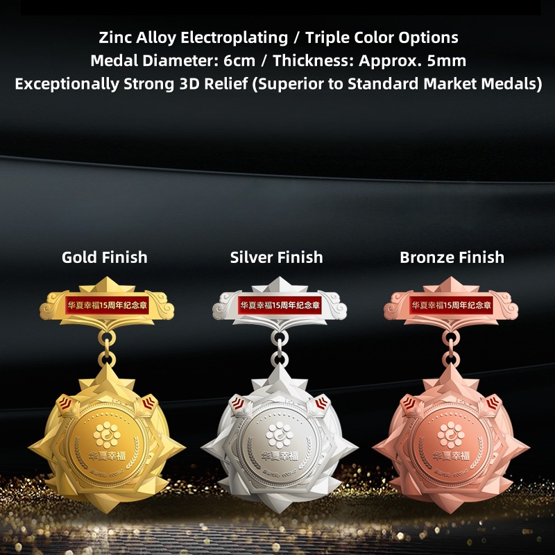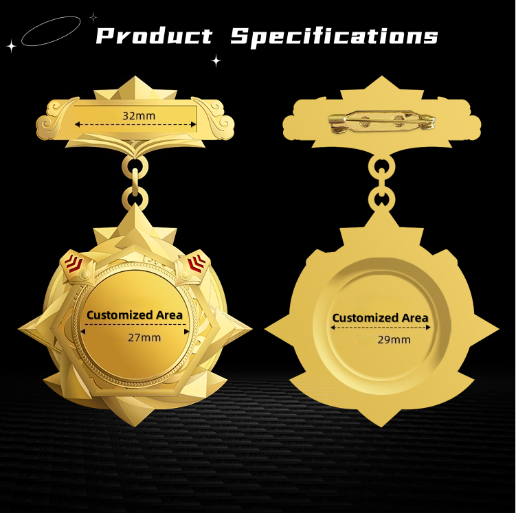 DetailBasic InformationName: Excellence Wind Honor MedalDimensions: 60mm (width) × 90mm (height)Material: Zinc alloyCraftsmanship: Gold foil applied to customized areas on electroplated frontOccasions: Group commemorative eventsColor Options:Gold (customizable content)Silver (customizable content)Bronze (customizable content)Packaging Options:Medal + Paper BoxMedal + Wooden BoxMedal + Book-style BoxMedal + Tri-fold Wooden BoxKey Features Highlight:✓ Premium zinc alloy with gold/silver/bronze electroplating✓ Custom engraving on gold foil panel (text/logo)✓ Elegant packaging for ceremonial presentation✓ Ideal for corporate, military, and academic awardsProfessional One-on-One Service"Excellence Wind" Honor MedalCraftsmanship for Creating Timeless Classics