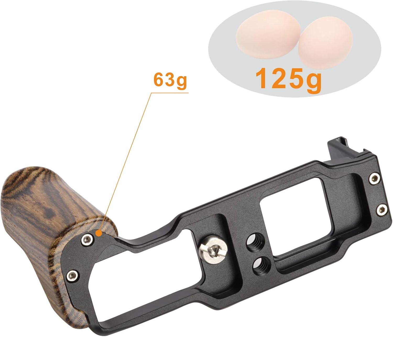 This handgrip makes a huge difference! It's so much easier to hold my Canon G7X Mark II steady now, especially when taking photos one-handed. The wood and aluminum construction feels solid and looks great. The quick release plate is a nice bonus for using with my Arca tripod.