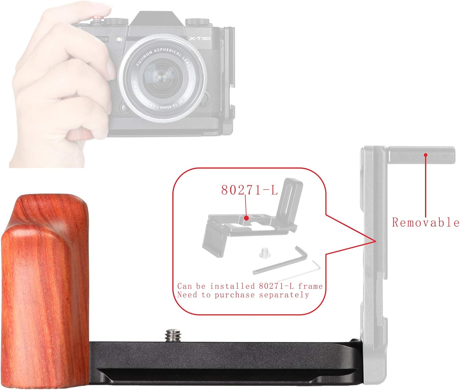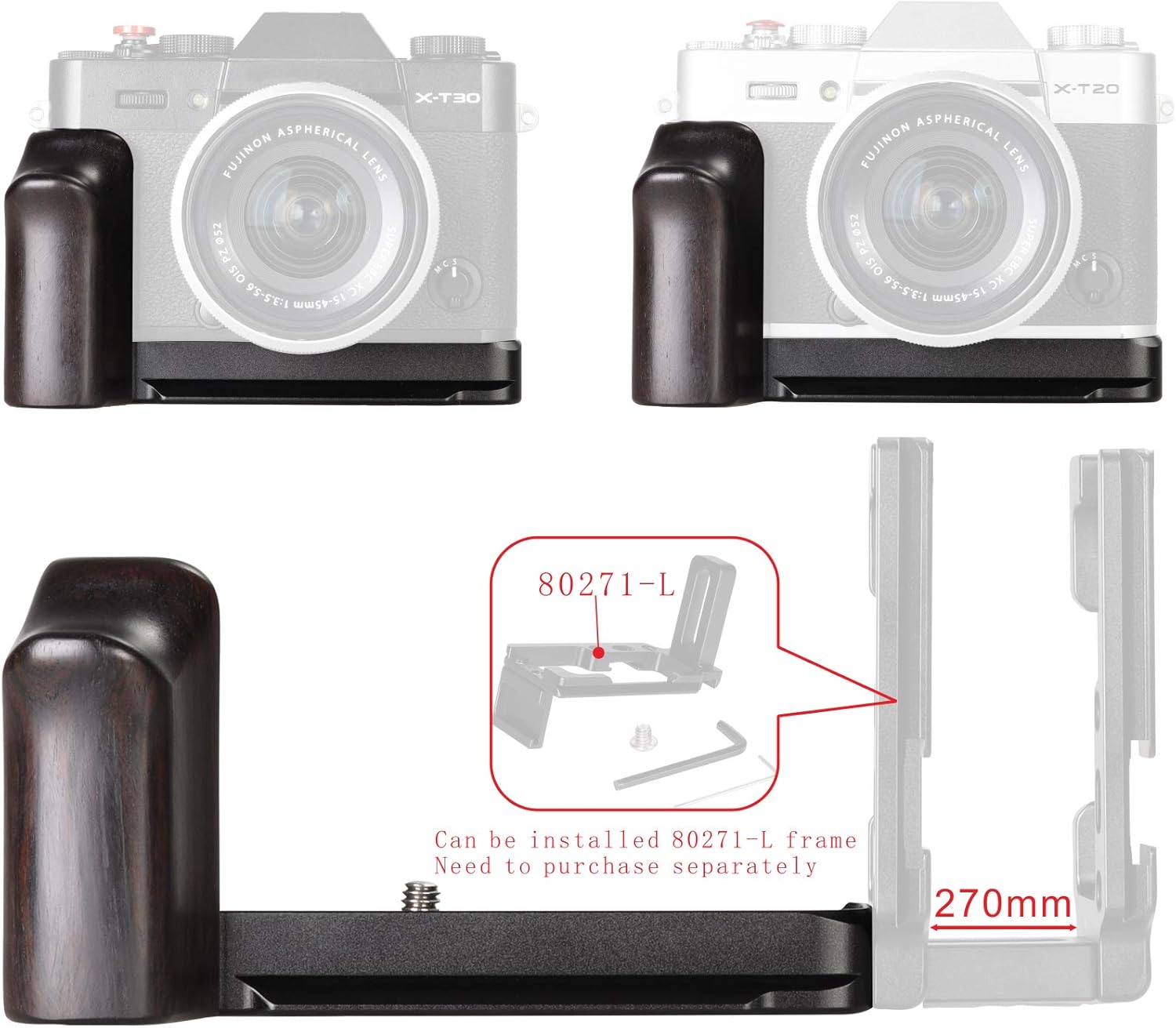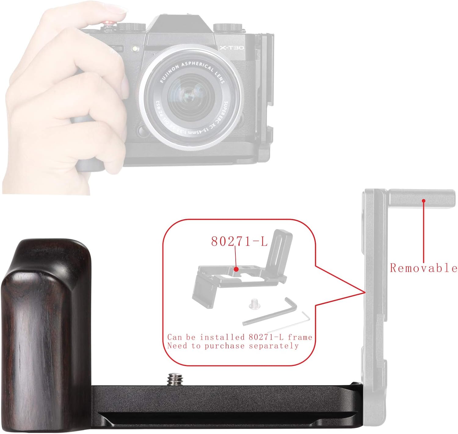 📷【Compatible with Fujifilm X-T30 X-T20 X-T10 camera】It passes 1/4 inch-20 screws Fixed at the bottom of the camera,Increase the grip of the camera.