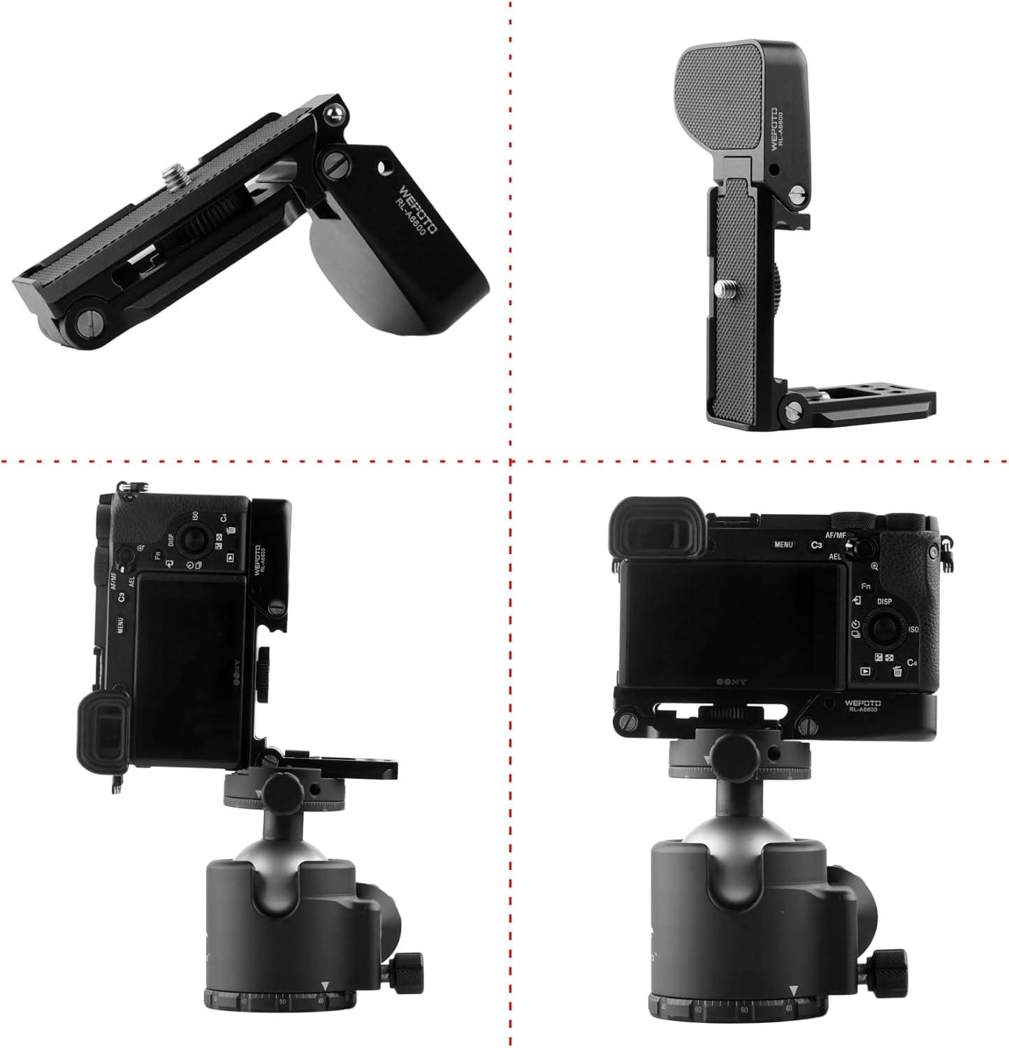 4.【Variable L-shaped quick release plate slide rail】A built-in Latin switch flips the quick-release plate slide rail 90 degrees into an L-shaped bracket, suitable for vertical shooting.