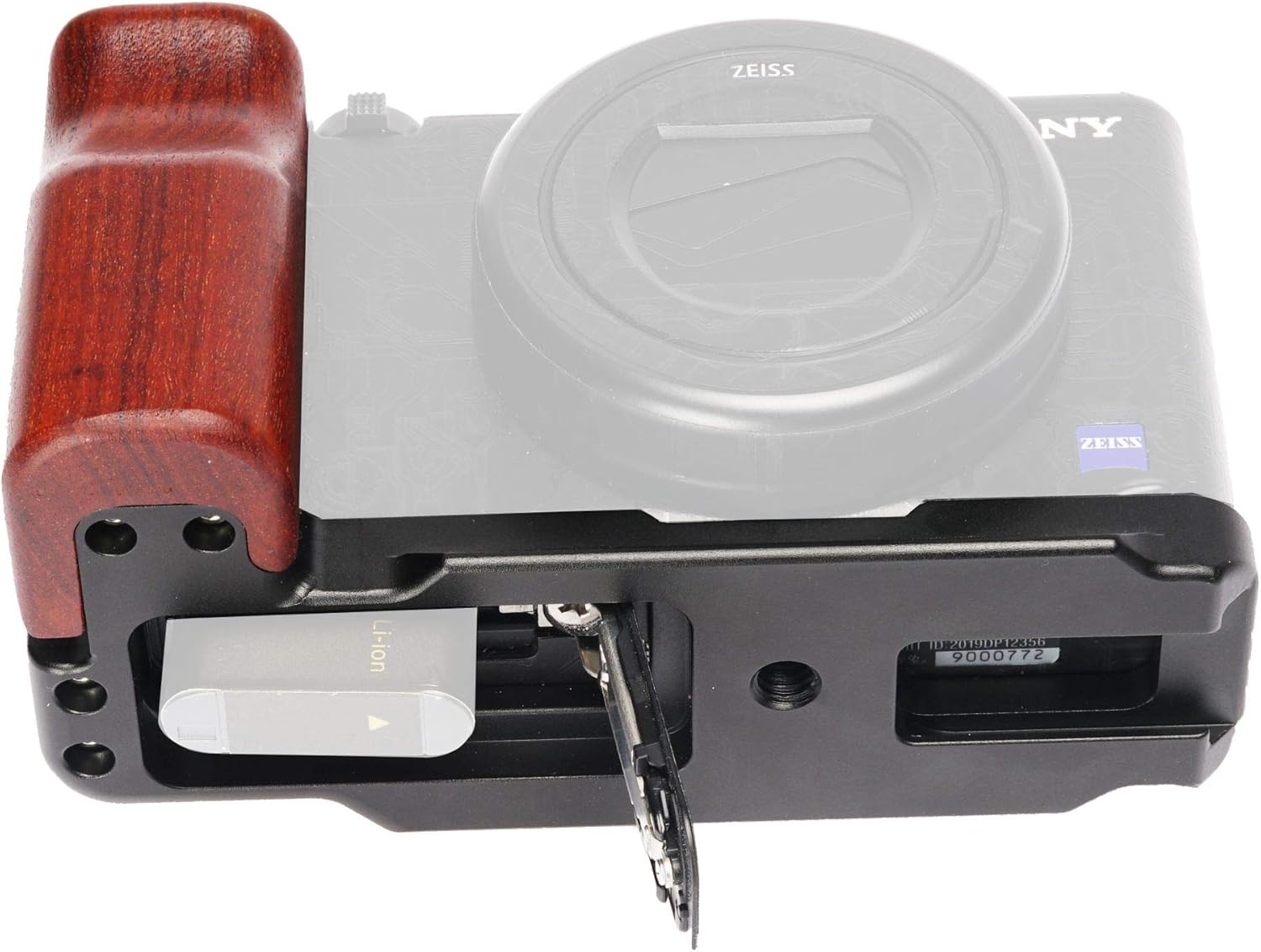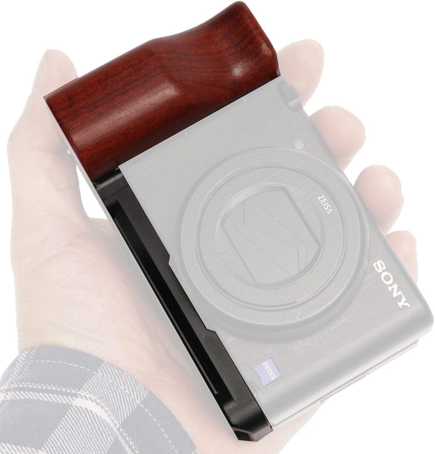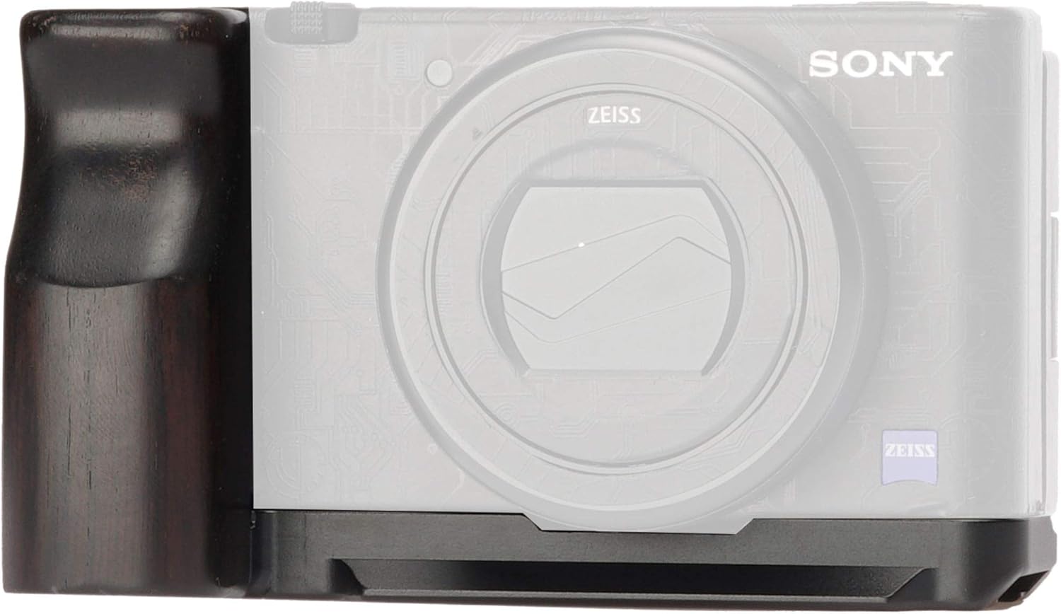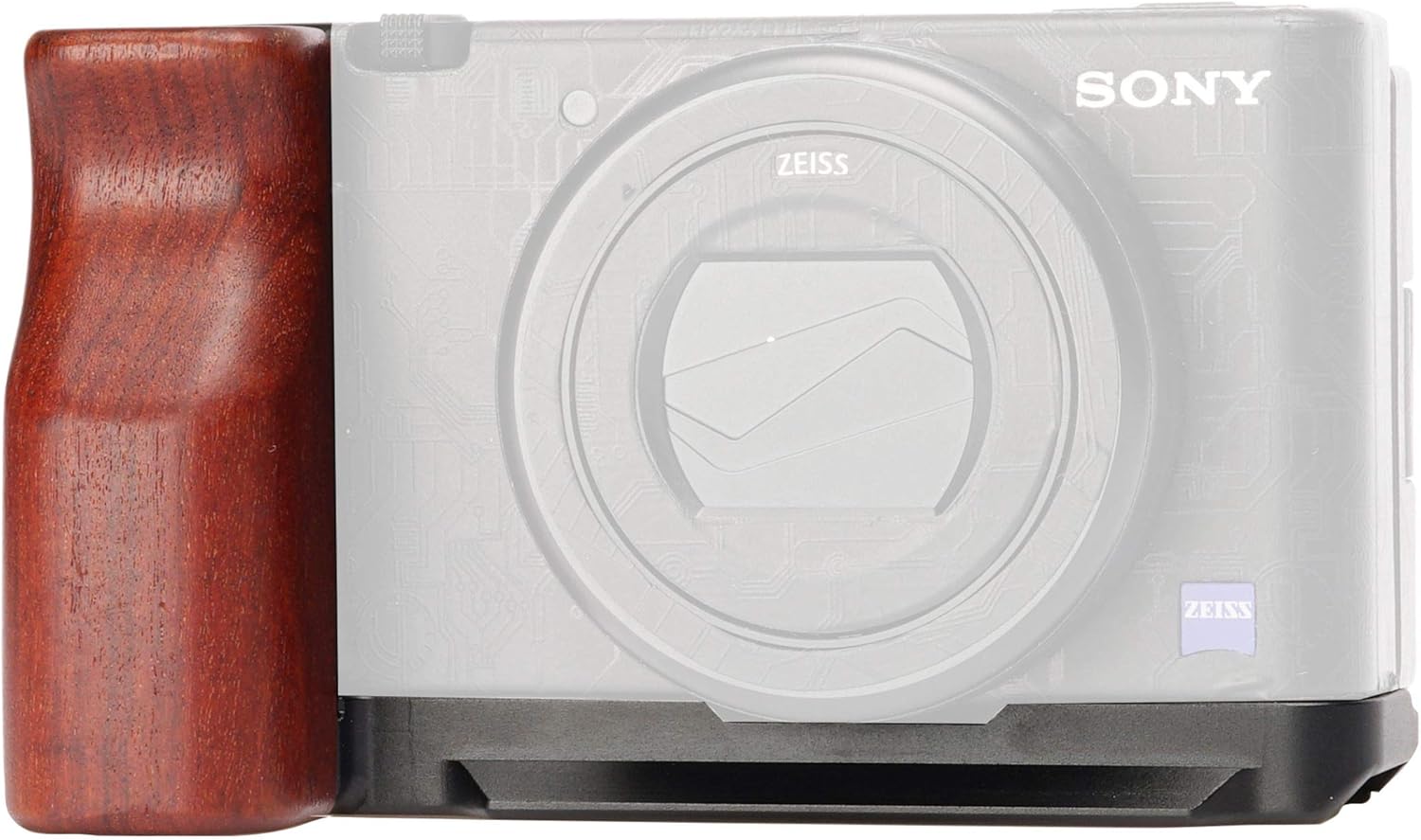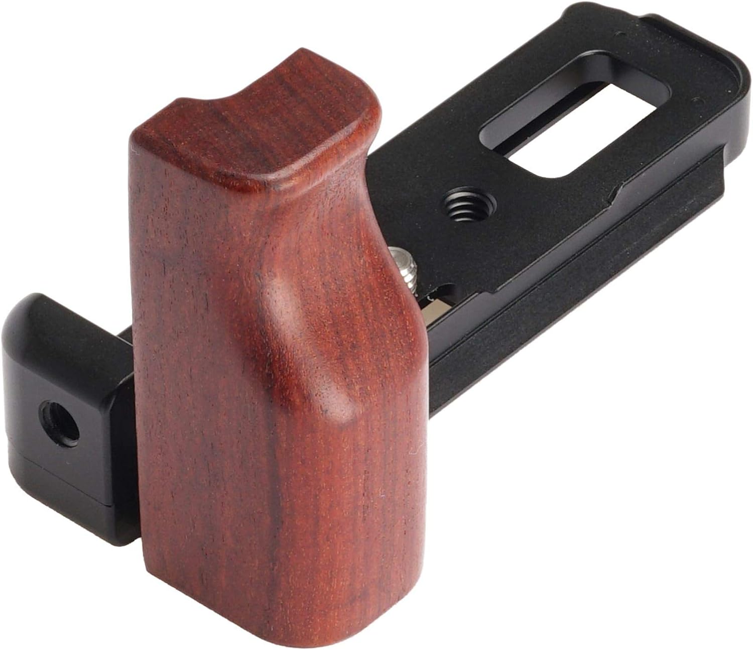 2.【Material: wood + aluminum alloy】grip can not only enhance the artistic atmosphere of the camera,Effectively reduce camera shake,And improve the grip comfort when using a large aperture lens,Aluminum base Effective protection Camera Not subject to wear,(Natural wood may have small defects)