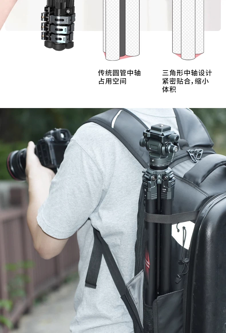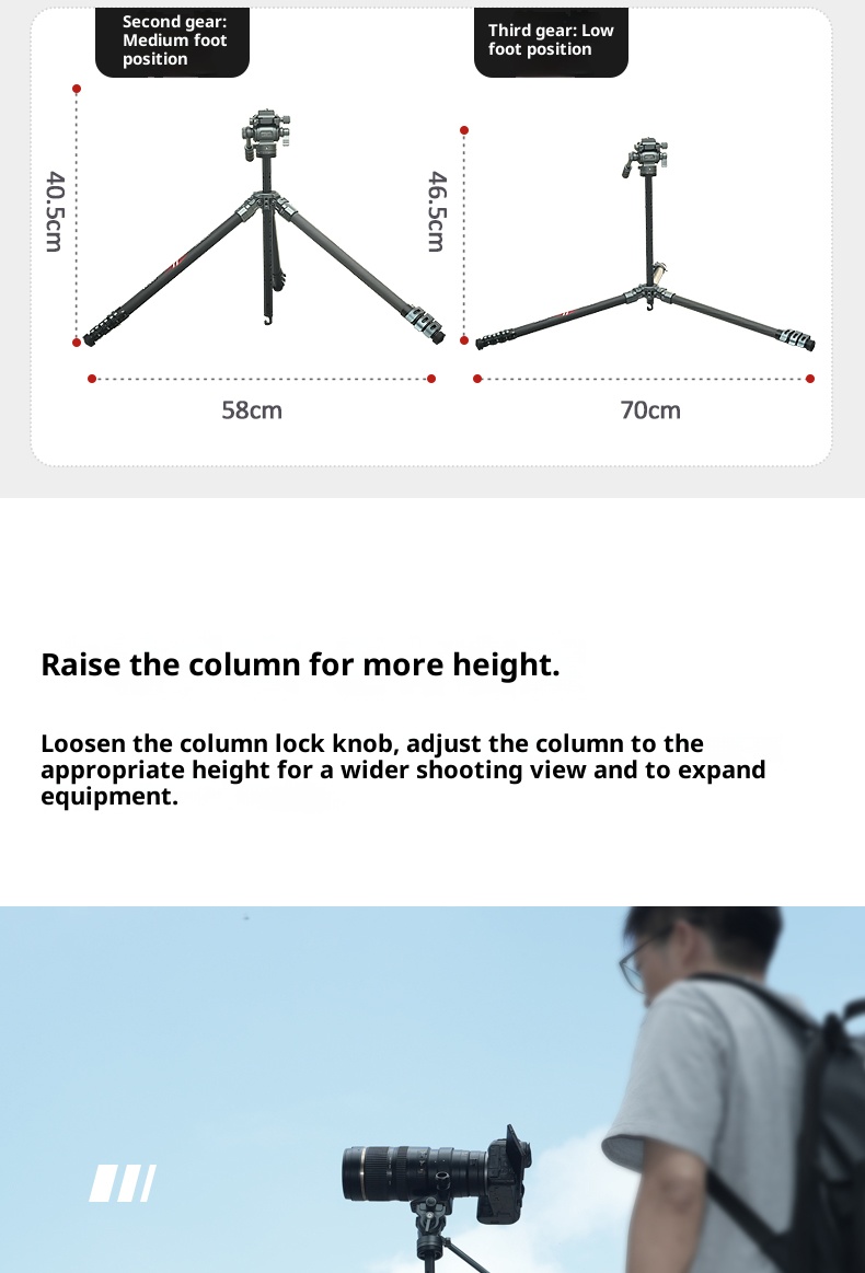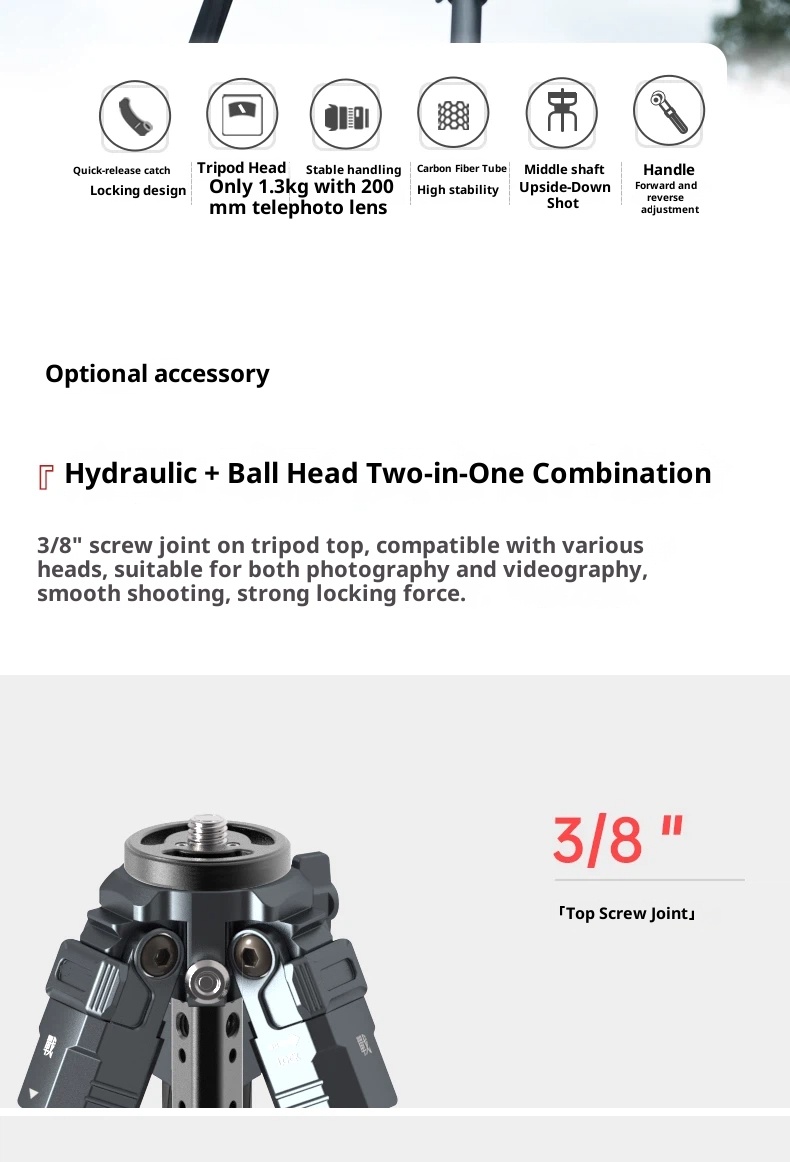 [Pull button] carbon fiber tripod interchangeable lens digital camera photography camera aluminum alloy spherical hydraulic PTZ extended center shaft light and portable bracket