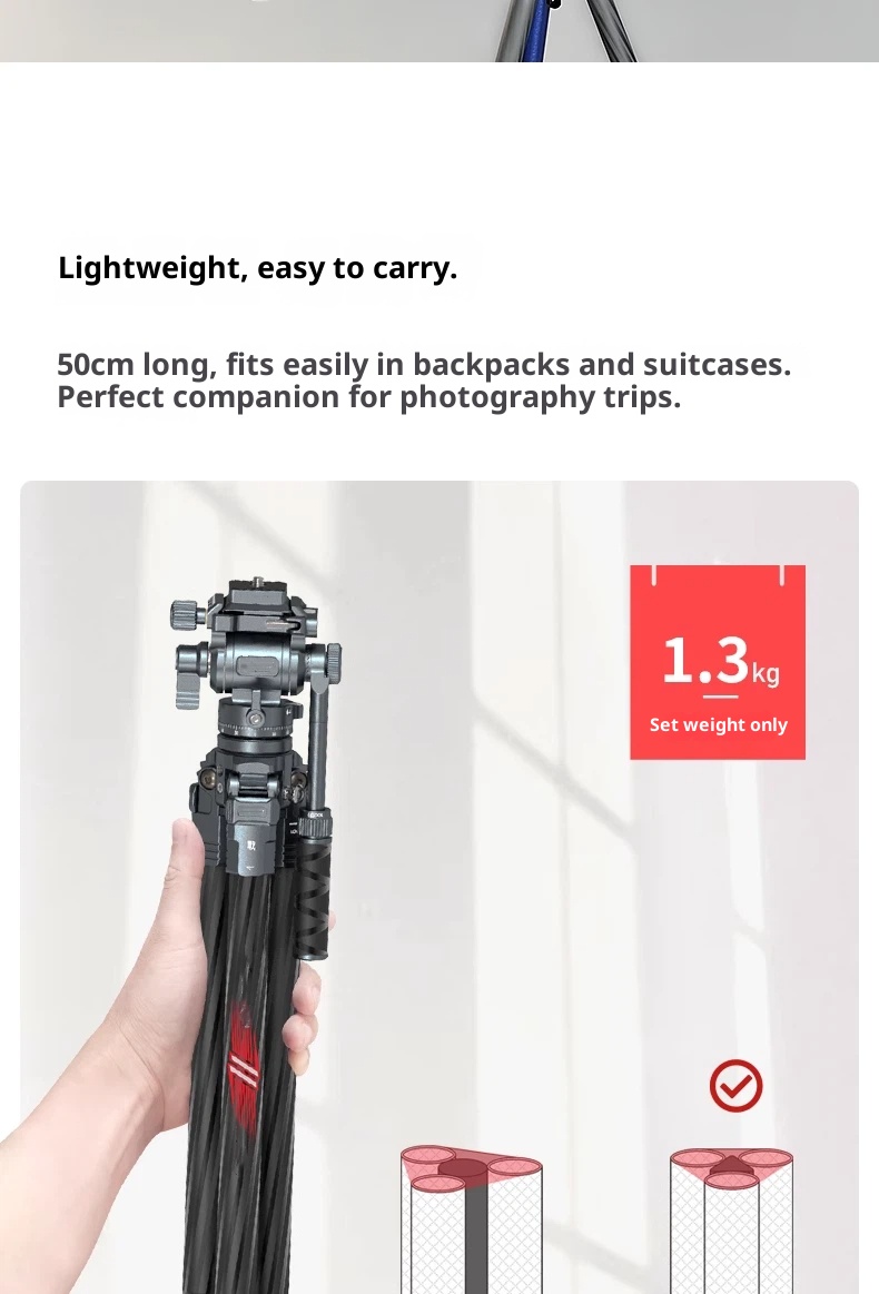 Just got this tripod and already loving it! Super lightweight for hiking and the carbon fiber feels really sturdy. The pull button design is a lifesaver when I'm trying to set up quickly. Highly recommend!
