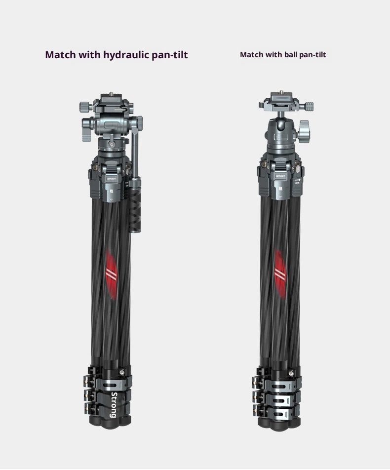 この三脚、マジ最高!炭素繊維で軽いのに、レンズ交換式のデジタルカメラもしっかり支えてくれる。油圧式のPTZもスムーズで使いやすい。写真撮影が趣味の私にはなくてはならないアイテムです!