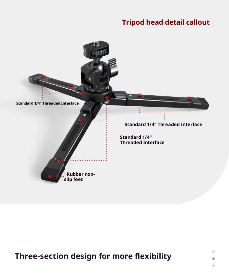 All-metal aluminum alloy tripod mobile phone camera SLR stand for live streaming stabilizer PTZ desktop handheld selfie stick fixed base portable