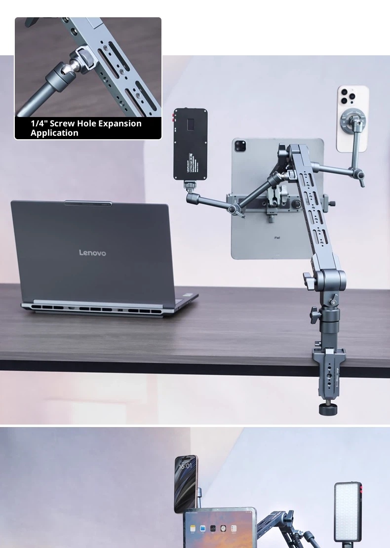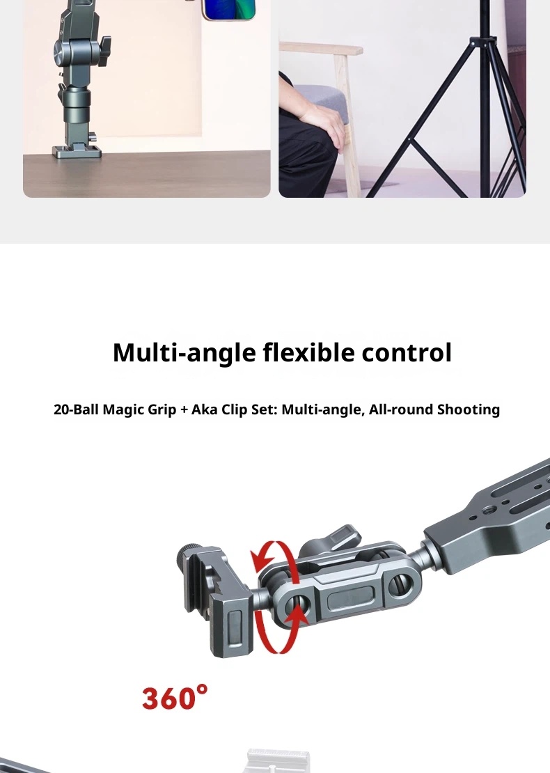 • Aluminum Alloy cantilever bracket desktop camera phablet fixed shelf 360-degree rotation adjustable live shooting binge-watching metal support frame