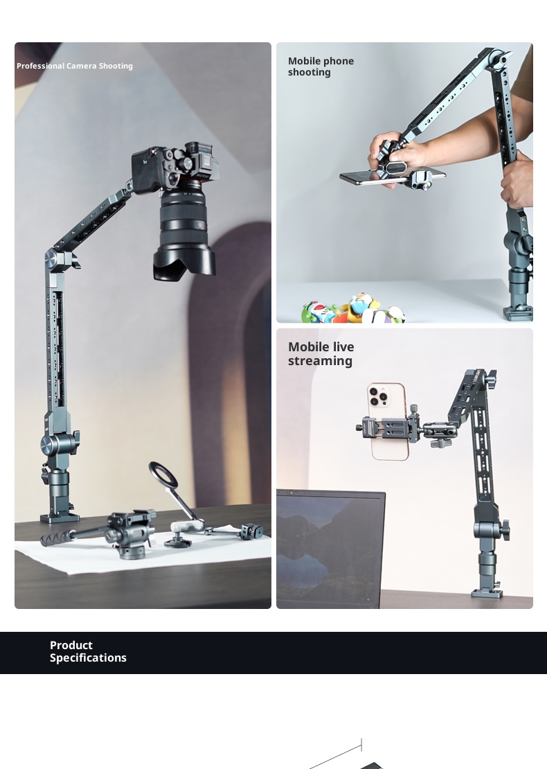 Obsessed! This cantilever bracket is exactly what I needed for my streaming setup. The aluminum is sleek, and the 360 rotation is a game-changer. Super easy to adjust and holds my phone perfectly for overhead shots of my art. Worth every penny!