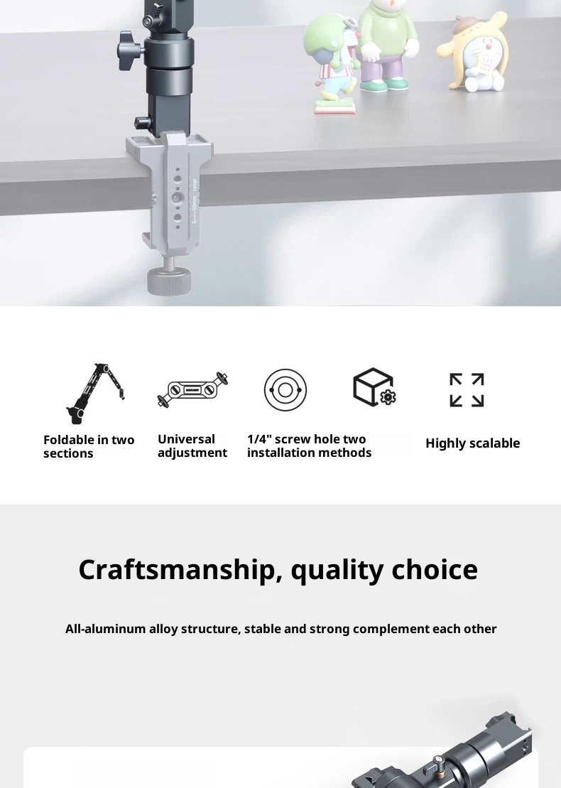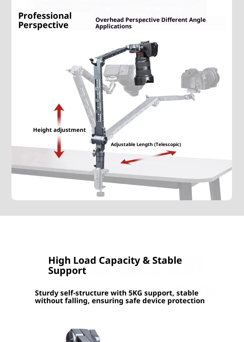 Absolutely brilliant! This bracket has transformed my home studio. The build quality is outstanding, with the all-aluminum construction providing a solid and stable base for my camera and tablet. The 360-degree rotation is incredibly smooth, allowing me to capture the perfect angle every time. It's so easy to adjust and position, making live shooting a breeze. Binge-watching is now a much more comfortable experience too! The craftsmanship is top-notch, and it's clear that a lot of thought went into the design. Highly recommended for anyone serious about their content creation or simply wants a versatile and reliable support frame.