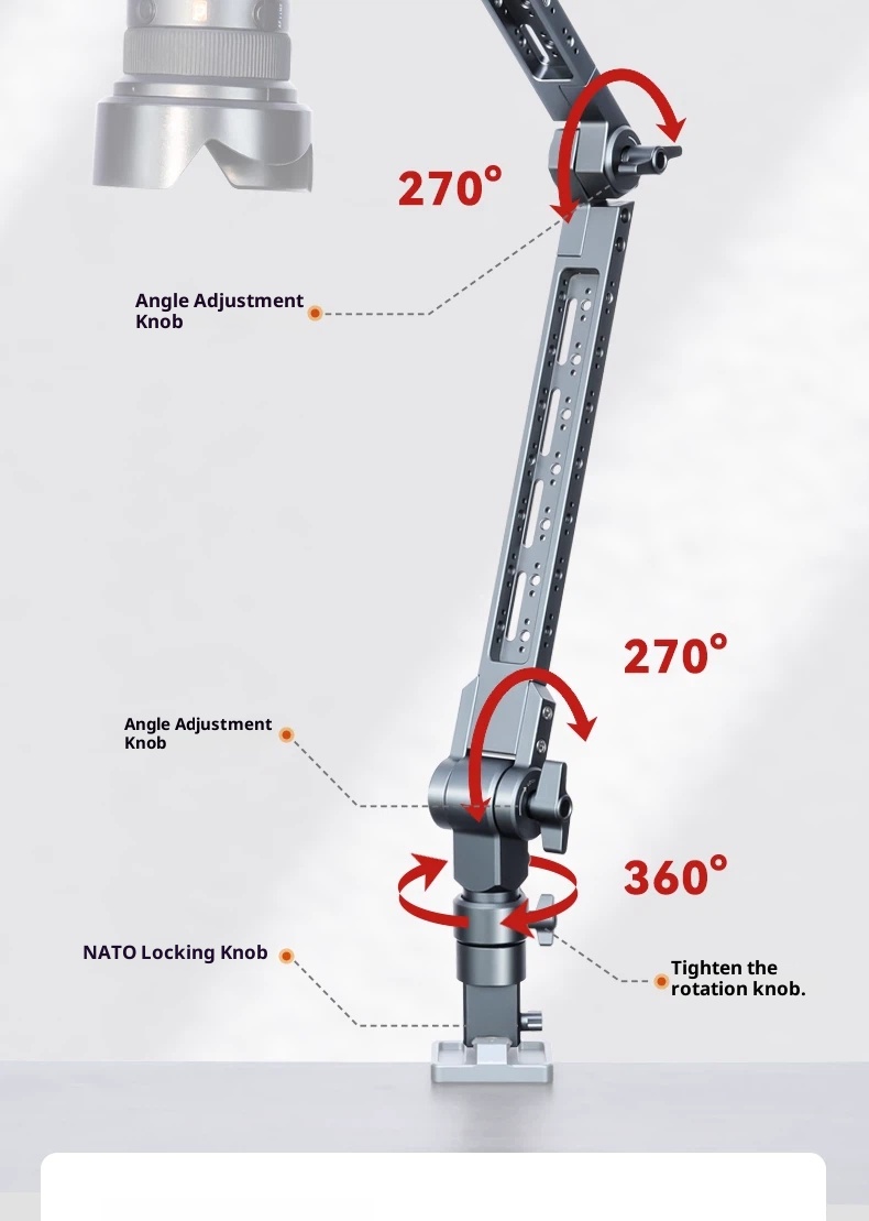 This thing is a lifesaver! I've been using it for my overhead shots for cooking videos, and it's been perfect. The aluminum is super sturdy, and the 360 rotation is smooth. Highly recommend!