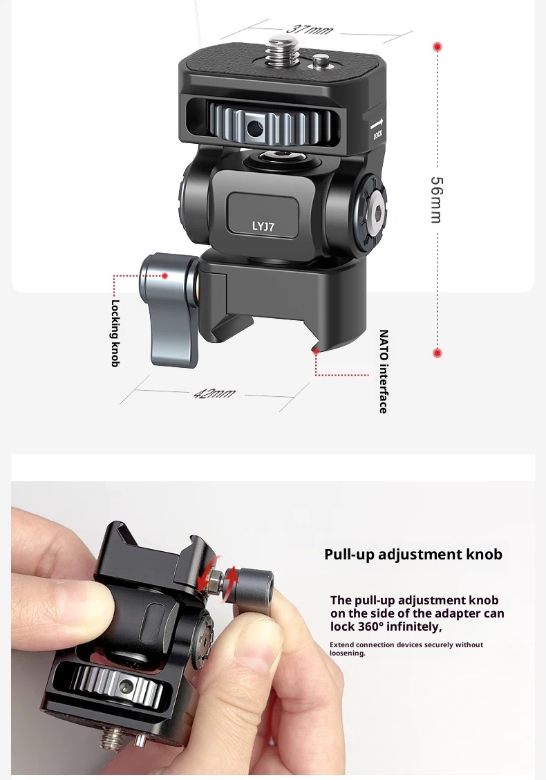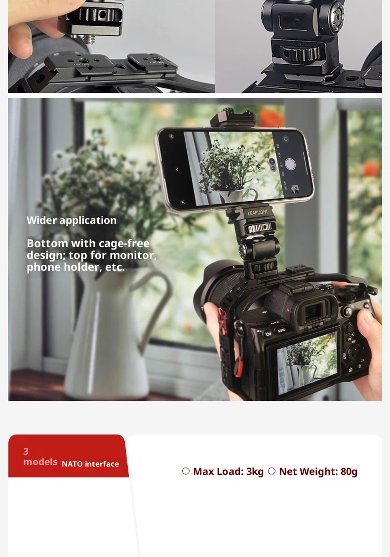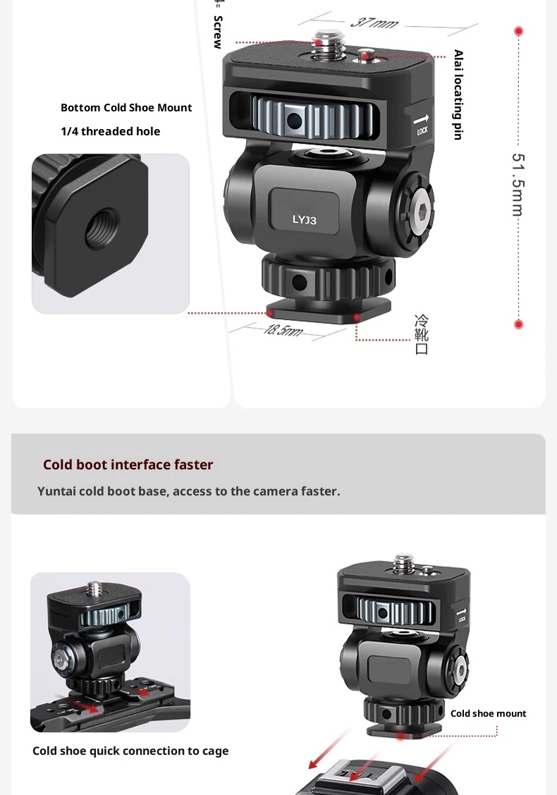Metal aluminum alloy hot shoe SLR camera mobile phone clip monitor same screen connection accessories bracket cold shoe live shooting snail PTZ rotating rabbit cage Photography