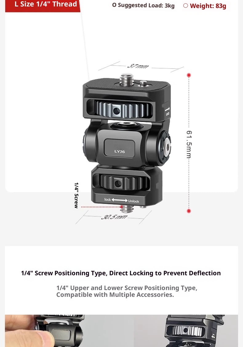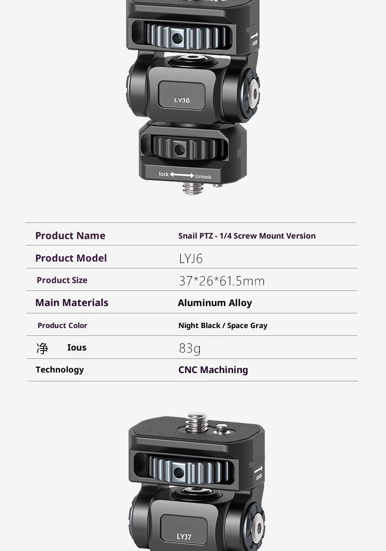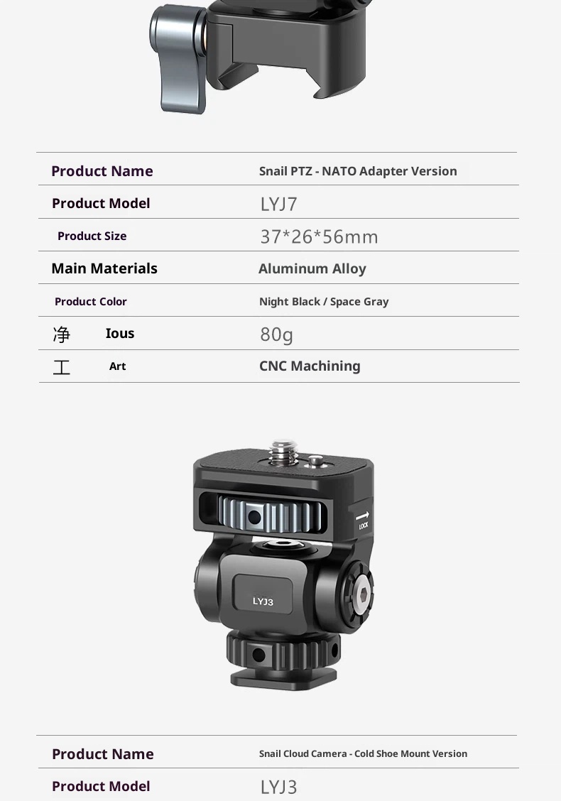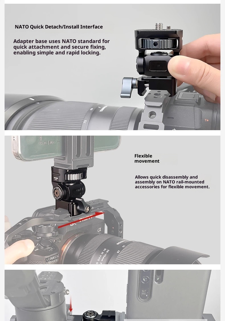 Metal aluminum alloy hot shoe SLR camera mobile phone clip monitor same screen connection accessories bracket cold shoe live shooting snail PTZ rotating rabbit cage Photography