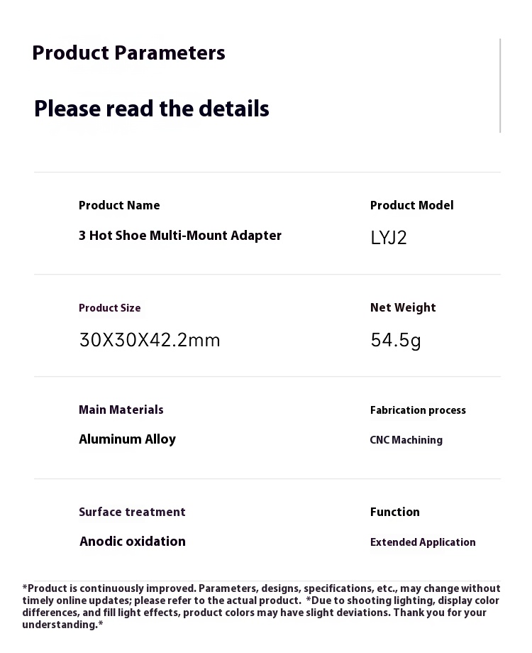 Color classification: LYJ2: space-like gray (bottom cold shoe) * 1 LYJ2: Dark Night Black (bottom cold shoe) * 1 LYJ9: space-like gray (bottom 1/4 screw) * 1 LYJ9: dark night black (bottom 1/4 screws) * 1 LYJ10: space-like gray (bottom NATO clip) * 1 YJ10: Dark Night Black (bottom NATO clip) * 1