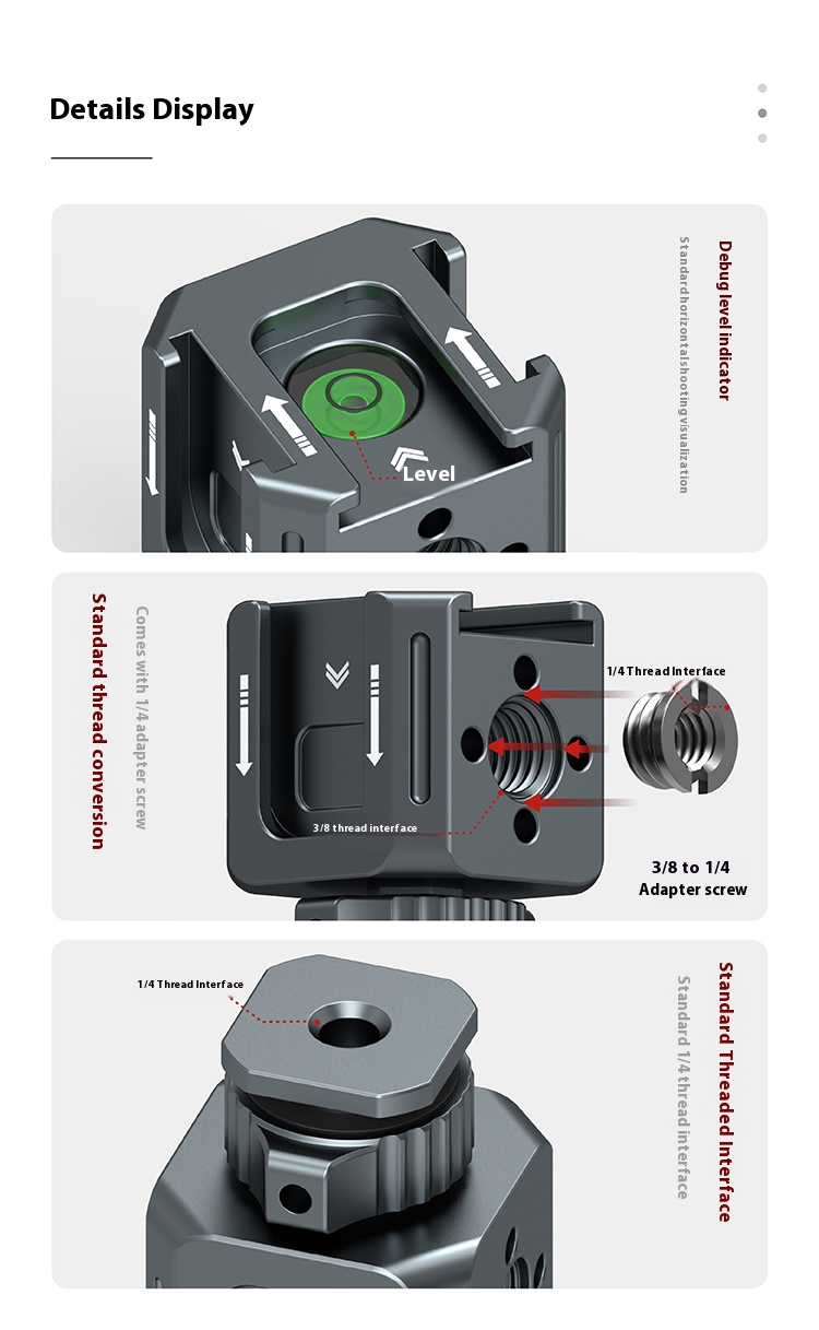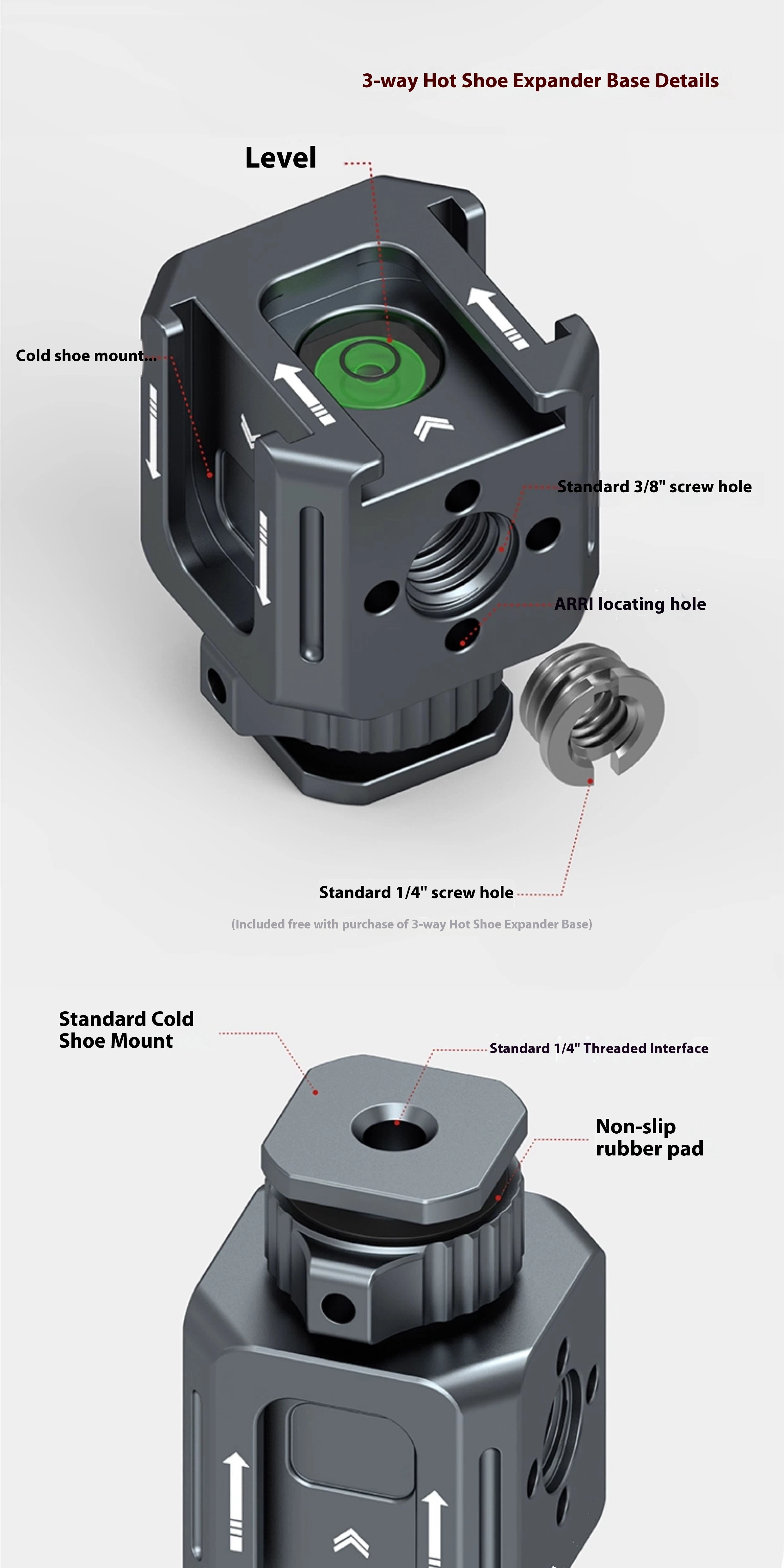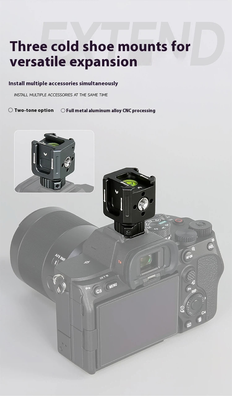 Three-head hot shoe stand interchangeable lens digital camera photography accessories metal expansion PTZ base external fill light microphone aluminum alloy cold shoe mini monitor stand