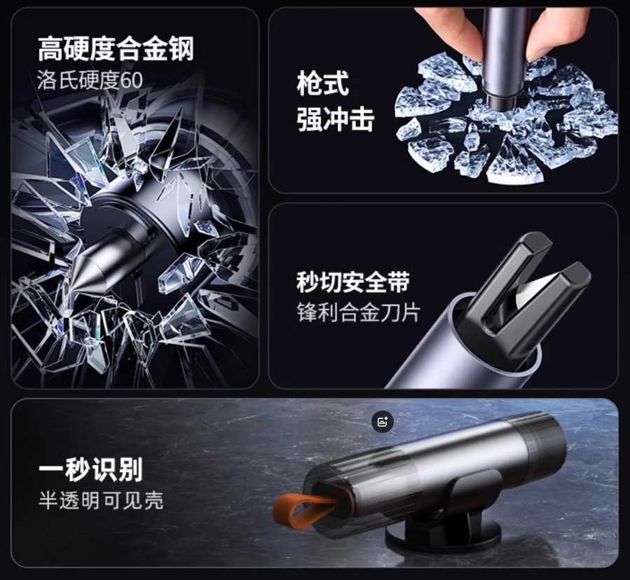 It can quickly cut the seat belt when the car is accidentally falling into the water. Broken car glass. Escape from the car in the water, equipped with a hand pulling automatic inflatable life circle, which can effectively solve the self -rescue equipment that can be effectively rescued during the crisis.